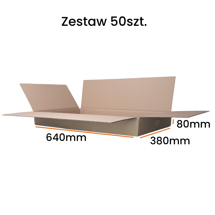 Ten zestaw 50 sztuk kartonów 640×380×80 mm to doskonały wybór dla firm e-commerce, które regularnie wysyłają produkty w małych i średnich rozmiarach.