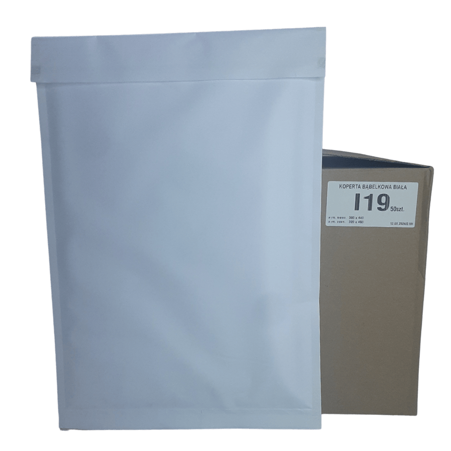Duży format I19 doskonale sprawdza się przy wysyłce tekstyliów, druków, dokumentów, odzieży, książek, elektroniki oraz gadżetów reklamowych. Estetyczny biały kolor podkreśla profesjonalny charakter przesyłki, a niska waga ułatwia optymalizację kosztów transportu.