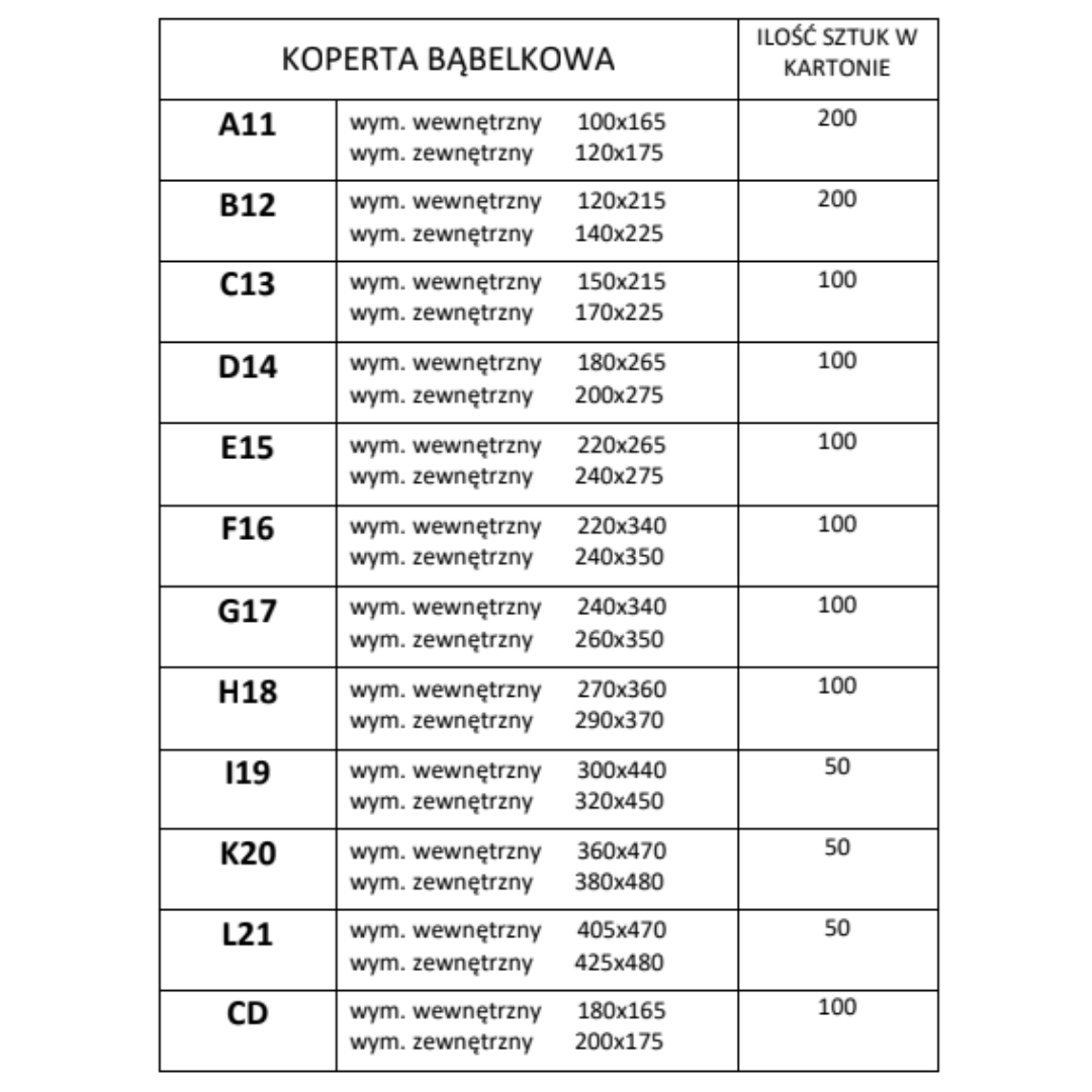 Koperta bąbelkowa K20 - 50 sztuk